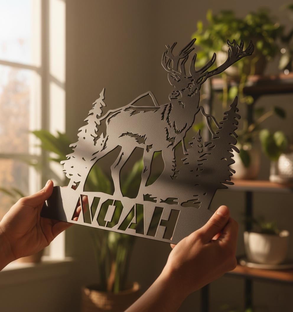 Yaşam alanlarınıza modern, maskülen ve zamansız bir dokunuş katmak için tasarlanan bu özel parça, 1.5mm kalınlığında yüksek kaliteli metalden üretilmiştir. İnce işçilikle hazırlanan geyik ve orman silueti, duvarınızda derinlikli bir gölge oyunu oluşturarak dekorasyonunuzun odak noktası haline gelir.